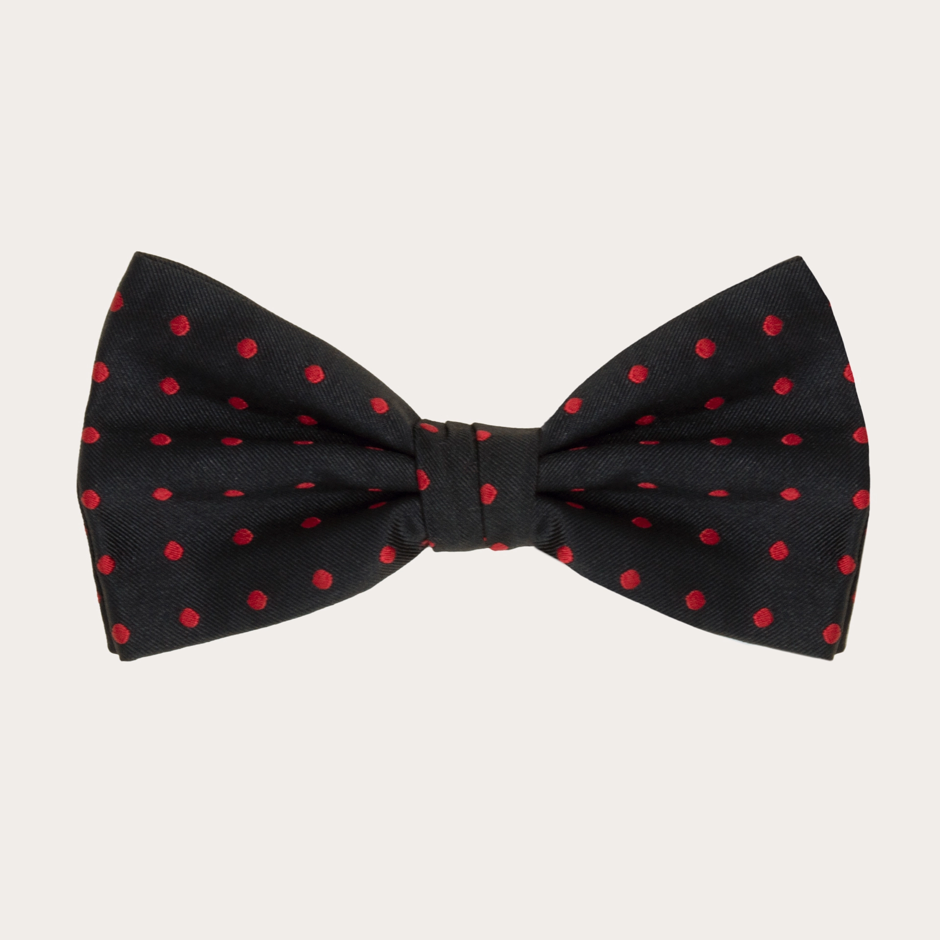 Papillon pre noué noir avec pois rouge. Ce noeud papillon de la gamme classiques est d?une grande classe et se distingue par sa haute qualité