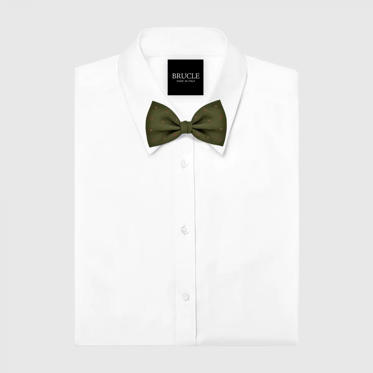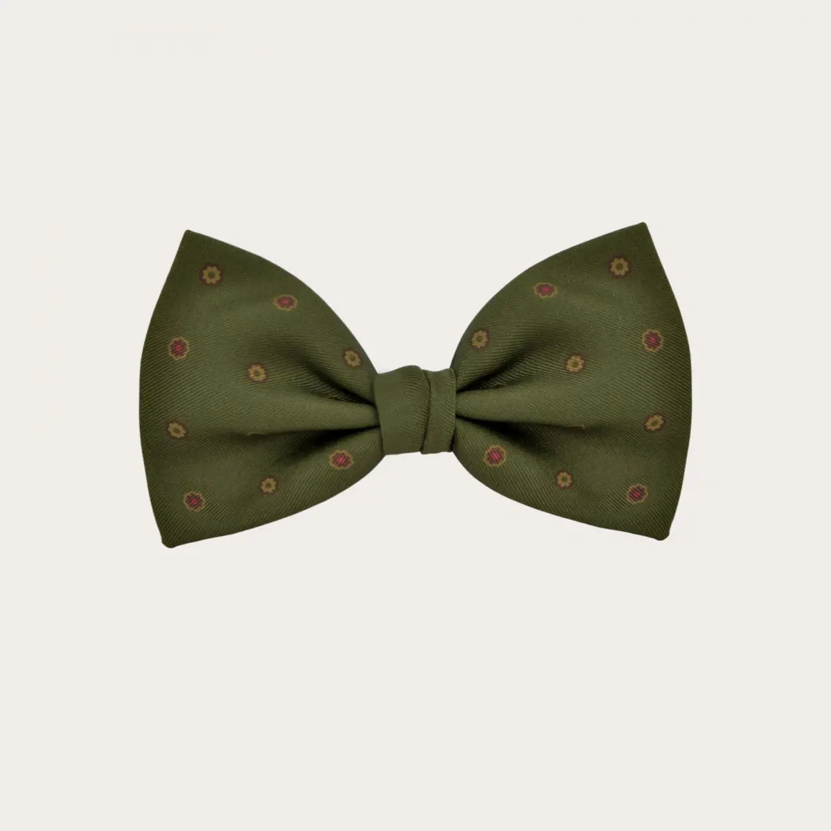 Exclusif nœud papillon en soie verte avec motif floral imprimé, un design original et raffiné, avec un style discret et élégant.