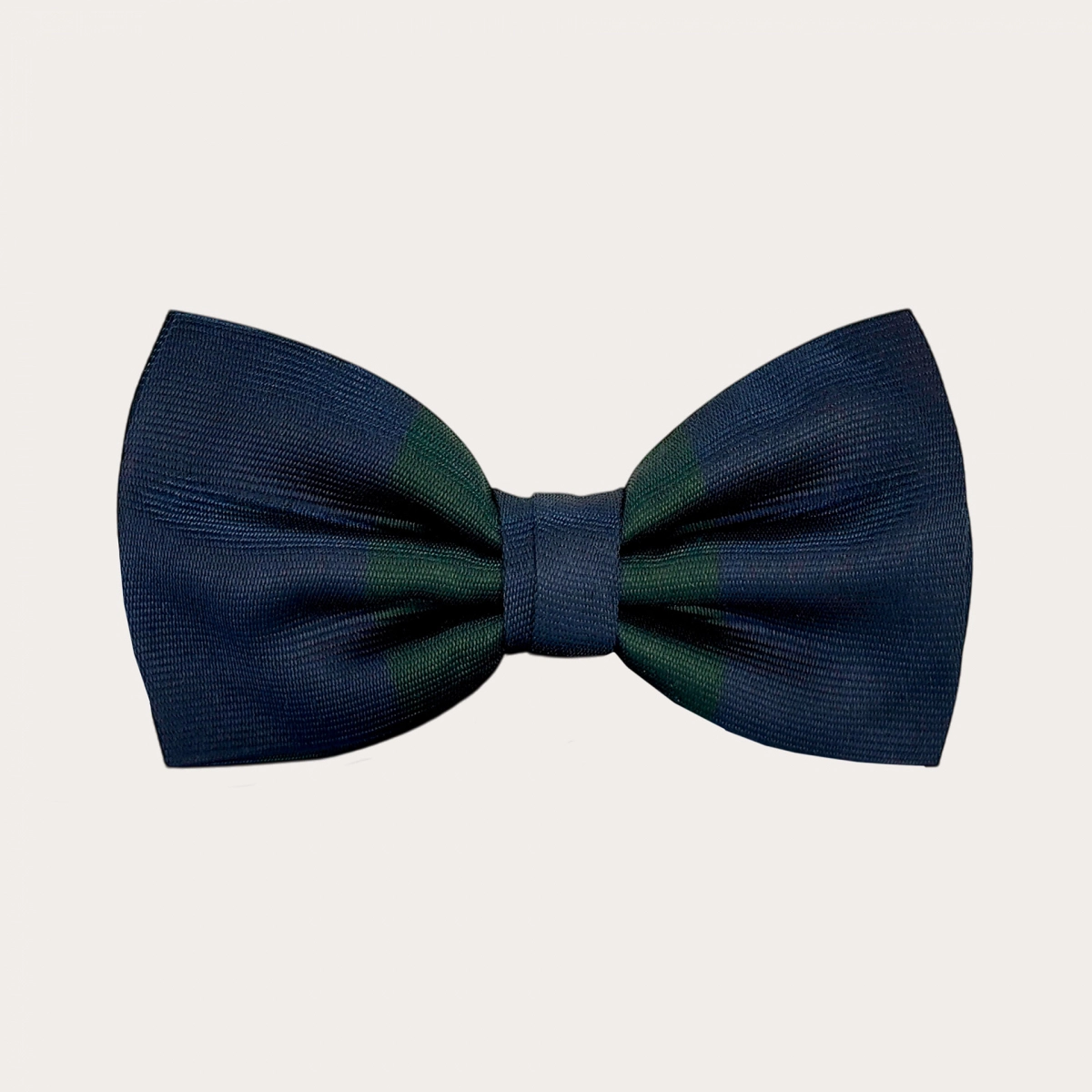 Nœud papillon regimental à rayures verticales vertes et bleues en soie : un accessoire au charme intemporel, élégant et raffiné, parfait pour apporter une touche de style distinctif à votre tenue.