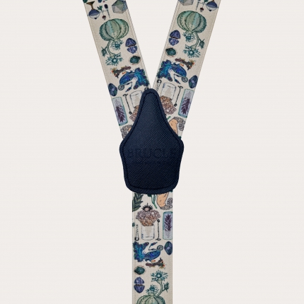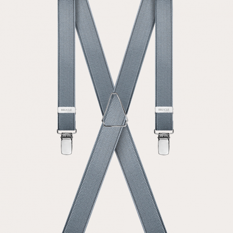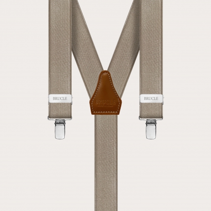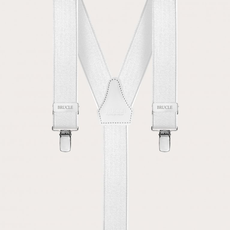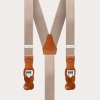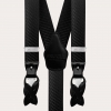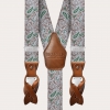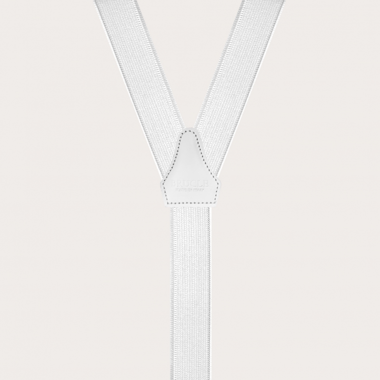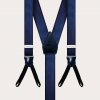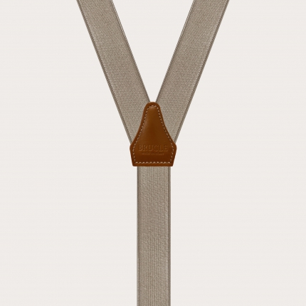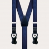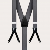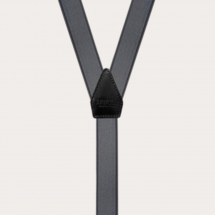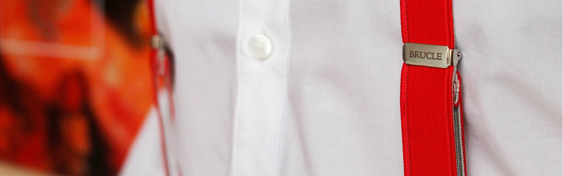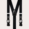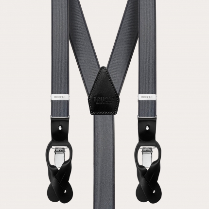 Un modèle à double usage, qui se porte soit avec des pinces, soit avec des boutonnières en cuir.