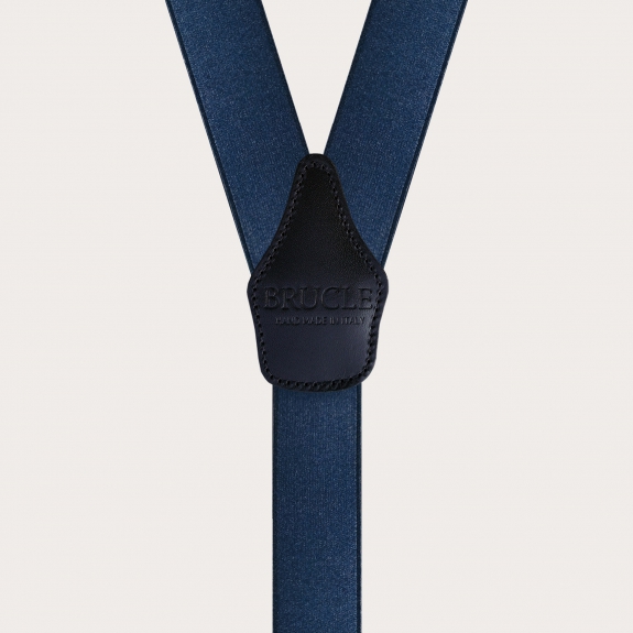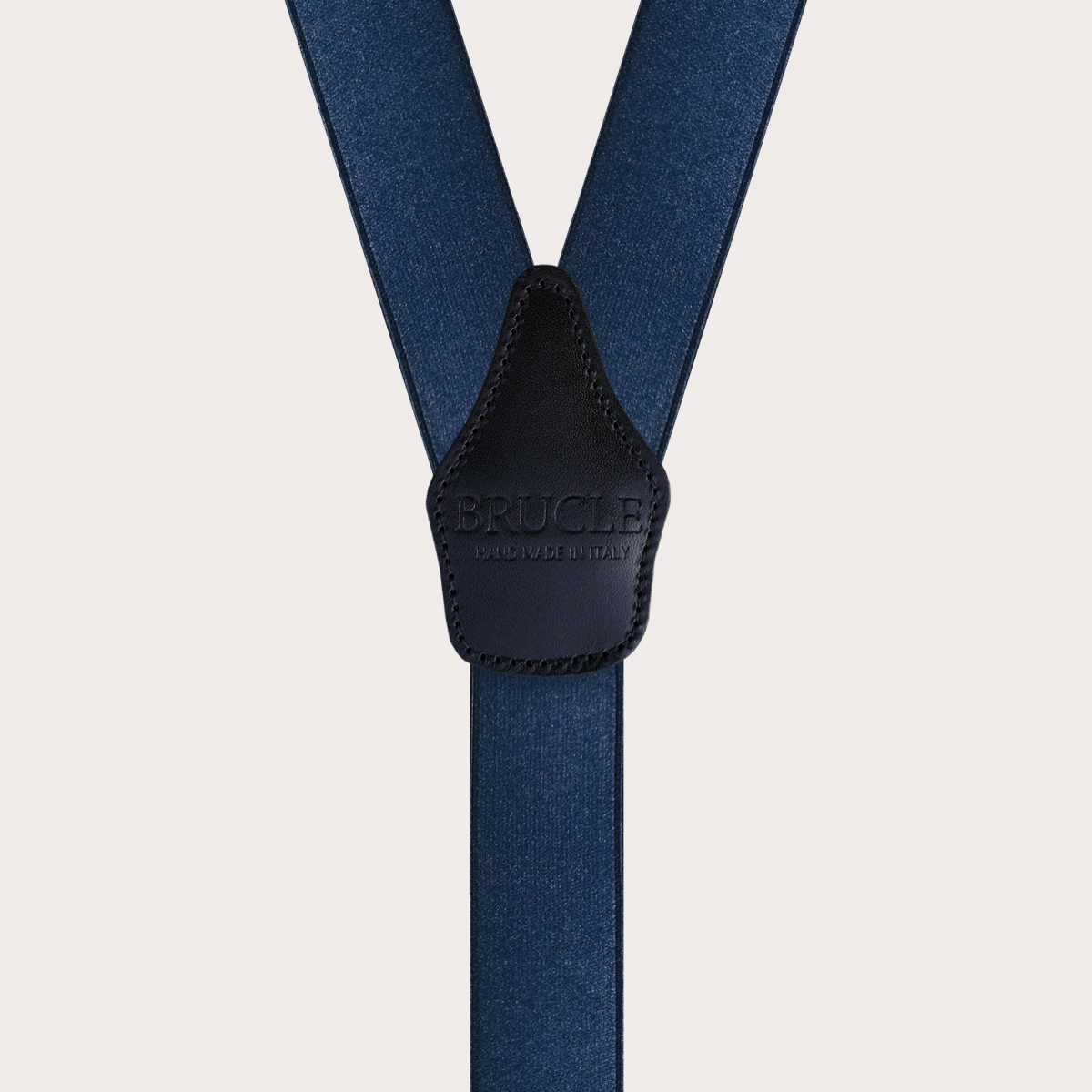Ces bretelles bleues pour homme, personnalisables avec des initiales ou une date, sont la combinaison parfaite d'élégance et de fonctionnalité et peuvent être portées avec des clips ou des boutons. Le système de fixation double avec clips dorés et cuir pour l'usage de boutons vous permet de personnaliser votre tenue selon votre style, garantissant un ajustement parfait pour toute occasion. Fabriquées à la main en Italie, ces bretelles sont l’accessoire idéal pour les mariages, les événements formels et lorsque vous recherchez un détail unique et élégant.