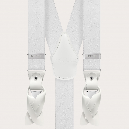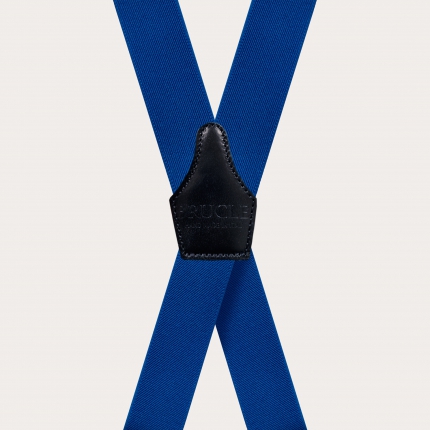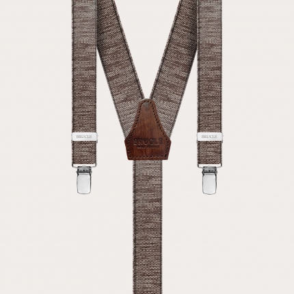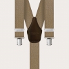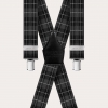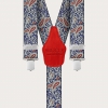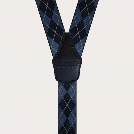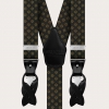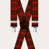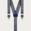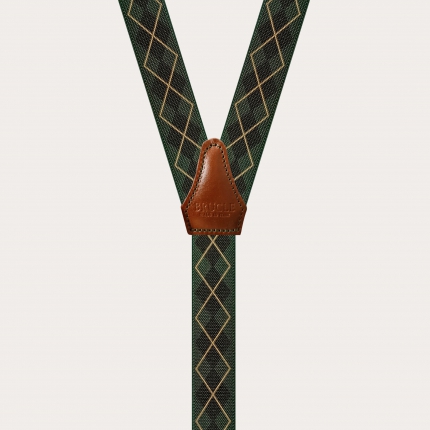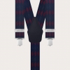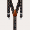 Ce modèle de bretelles fines sans nickel se caractérise par un motif régimentaire à l'allure presque tridimensionnelle, dont les couleurs sont reprises dans le backpatch en cuir vert et bleu coloré et dégradé à la main.