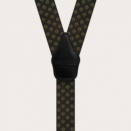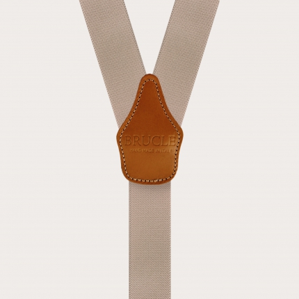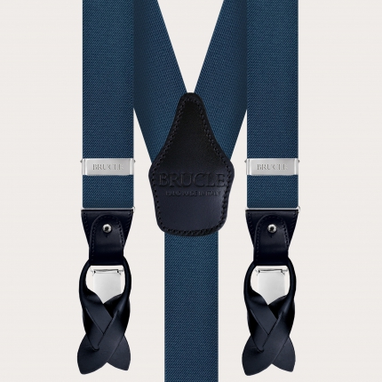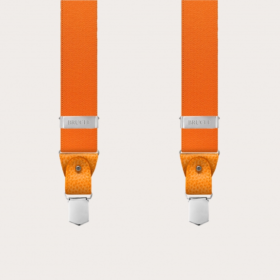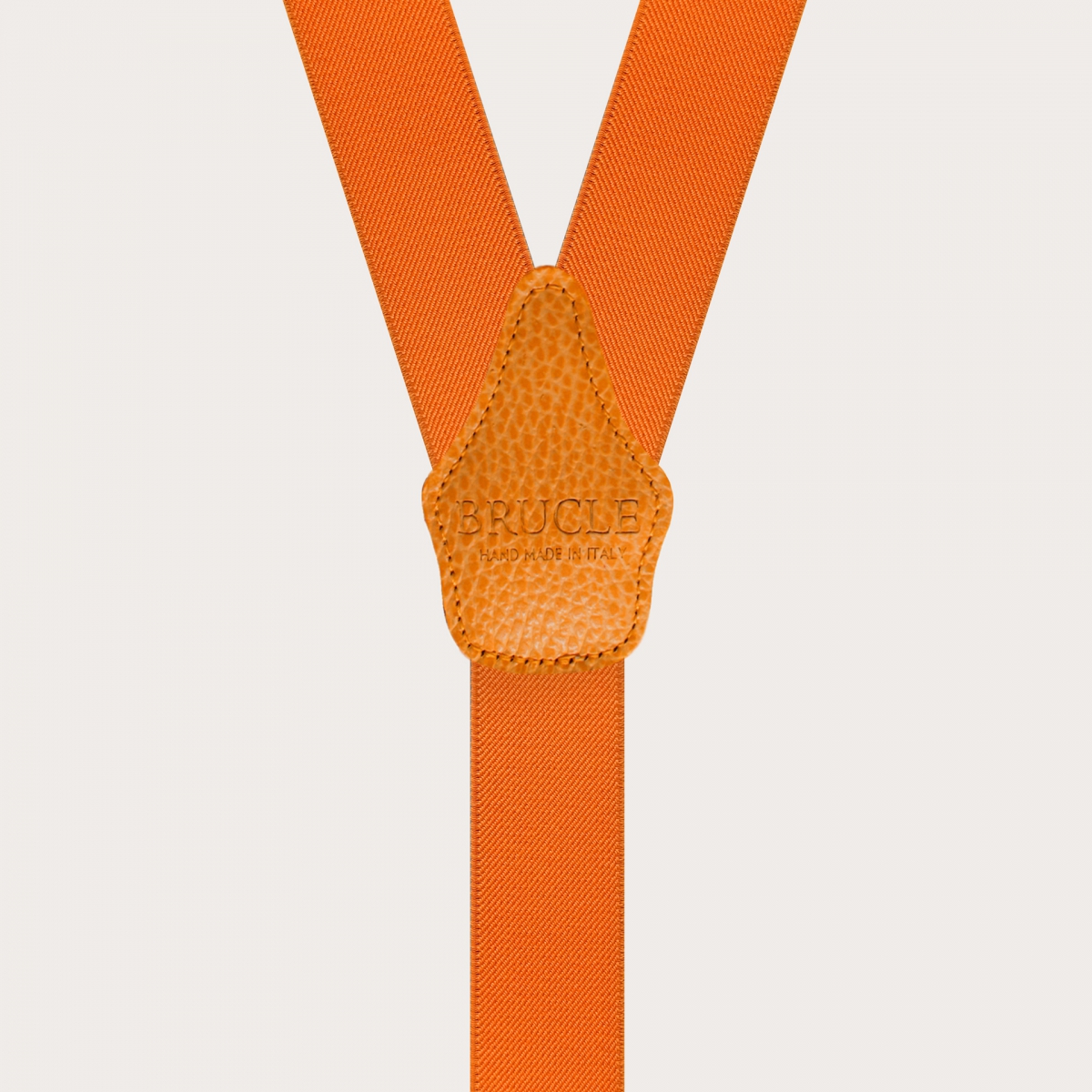 Bretelles élastiques unisexes originales de couleur vive, parfaites pour donner une touche de lumière à n'importe quelle tenue. Ce modèle est rendu unique par les parties en cuir foulonné de la même couleur que l'élastique, pour un résultat unique et surprenant.