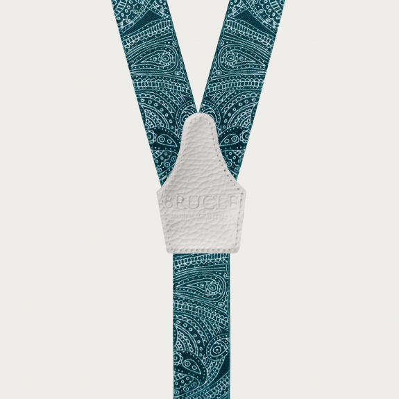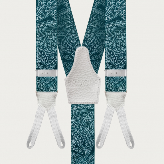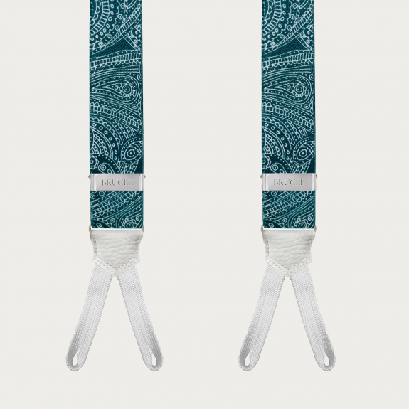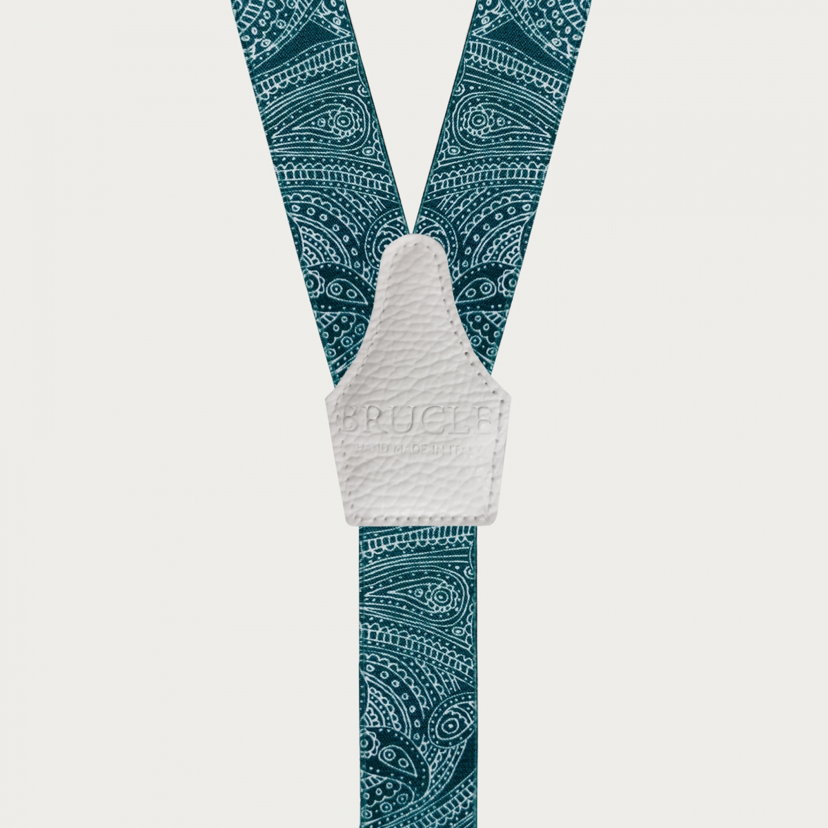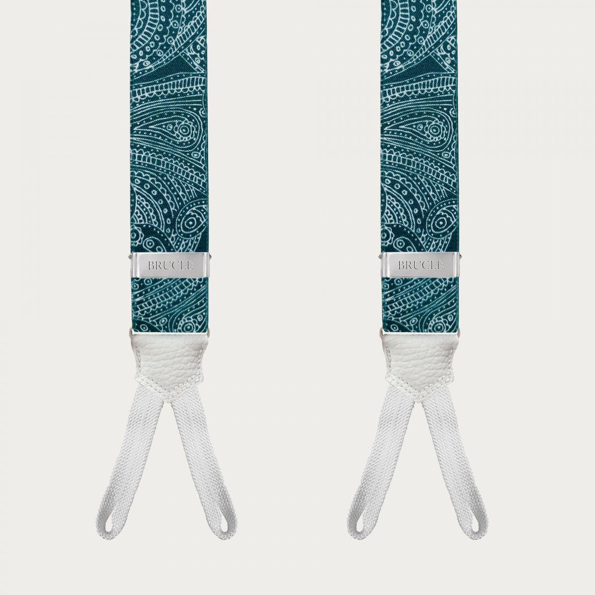 Bretelles vertes en soie originales pour boutons, avec des parties en cuir colorées à la main, un accessoire emblématique de l'artisanat italien.