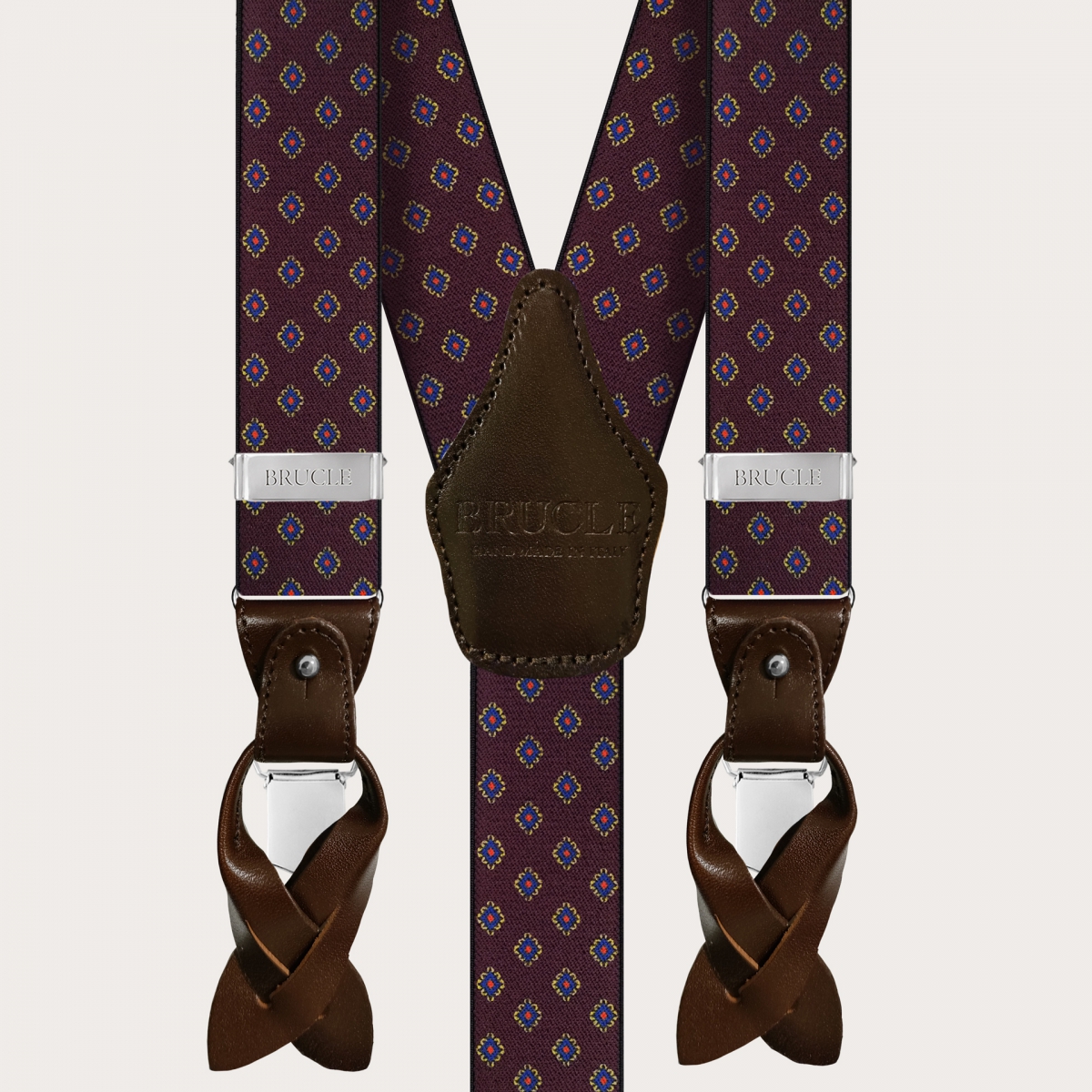 Bretelles bordeaux élastiques pour hommes avec motif géométrique