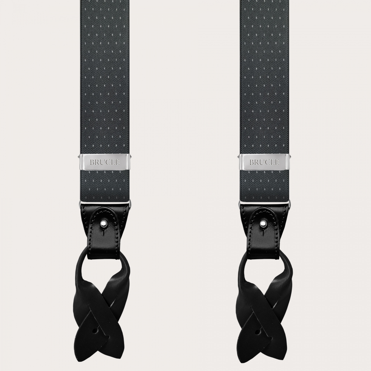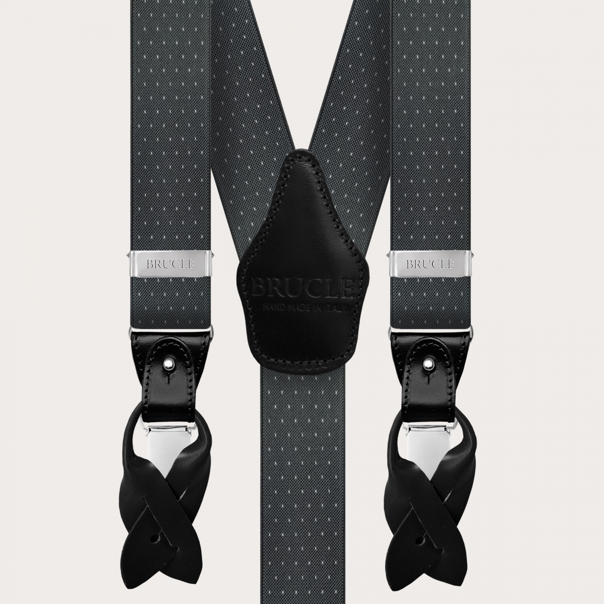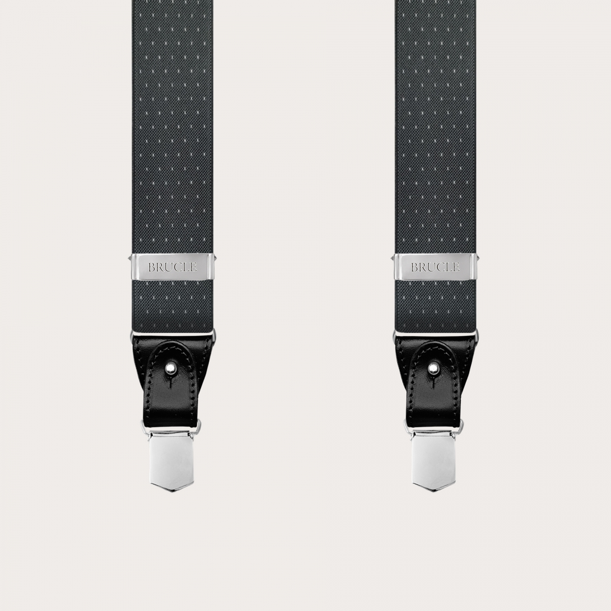 Bretelles élastiques grises en forme de Y avec motif à pois