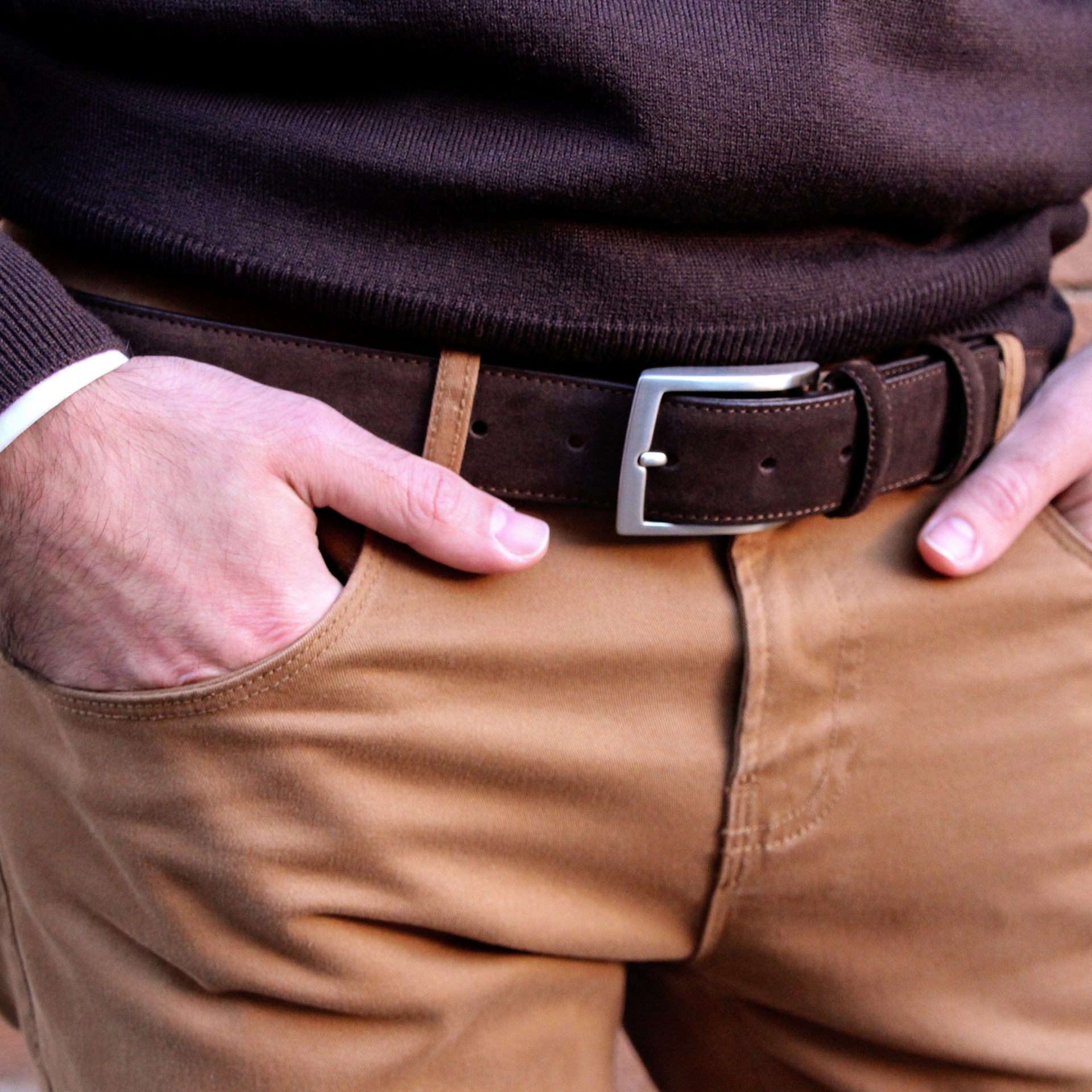 Exprimez votre style unique avec notre ceinture en cuir suédé marron écorce, un ajout essentiel à toute garde-robe grâce à son design classique et sa polyvalence. Cet accessoire élégant est orné d'une boucle en laiton massif satiné argent, garantie sans nickel, parfaite pour ceux qui recherchent le confort tout en évitant les allergies métalliques spécifiques.