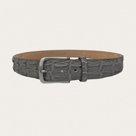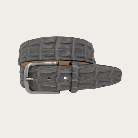 Ceinture en véritable cuir de crocodile. L'élégance du cuir exotique est accentuée par la coloration raffinée, pour un accessoire artisanal d'une beauté unique.
