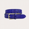 Ceinture de luxe en cuir d’alligator ou de crocodile avec boucle sans nickel, bleu nuancé de noir
