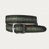 Ceinture décontractée pour hommes et femmes en cuir de crocodile véritable, couleur émeraude. Un accessoire à la beauté exotique, rendu unique par les finitions artisanales; parfait pour étonner.