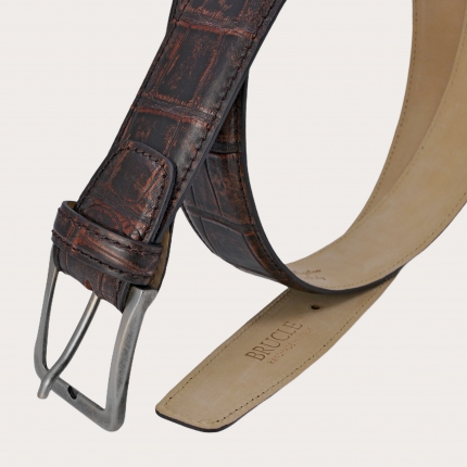 Ceinture crocodile colorée à la main, gold nuanché brun