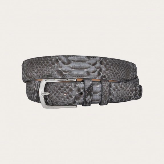 Ceinture en python gris poudré avec boucle argentée sans nickel