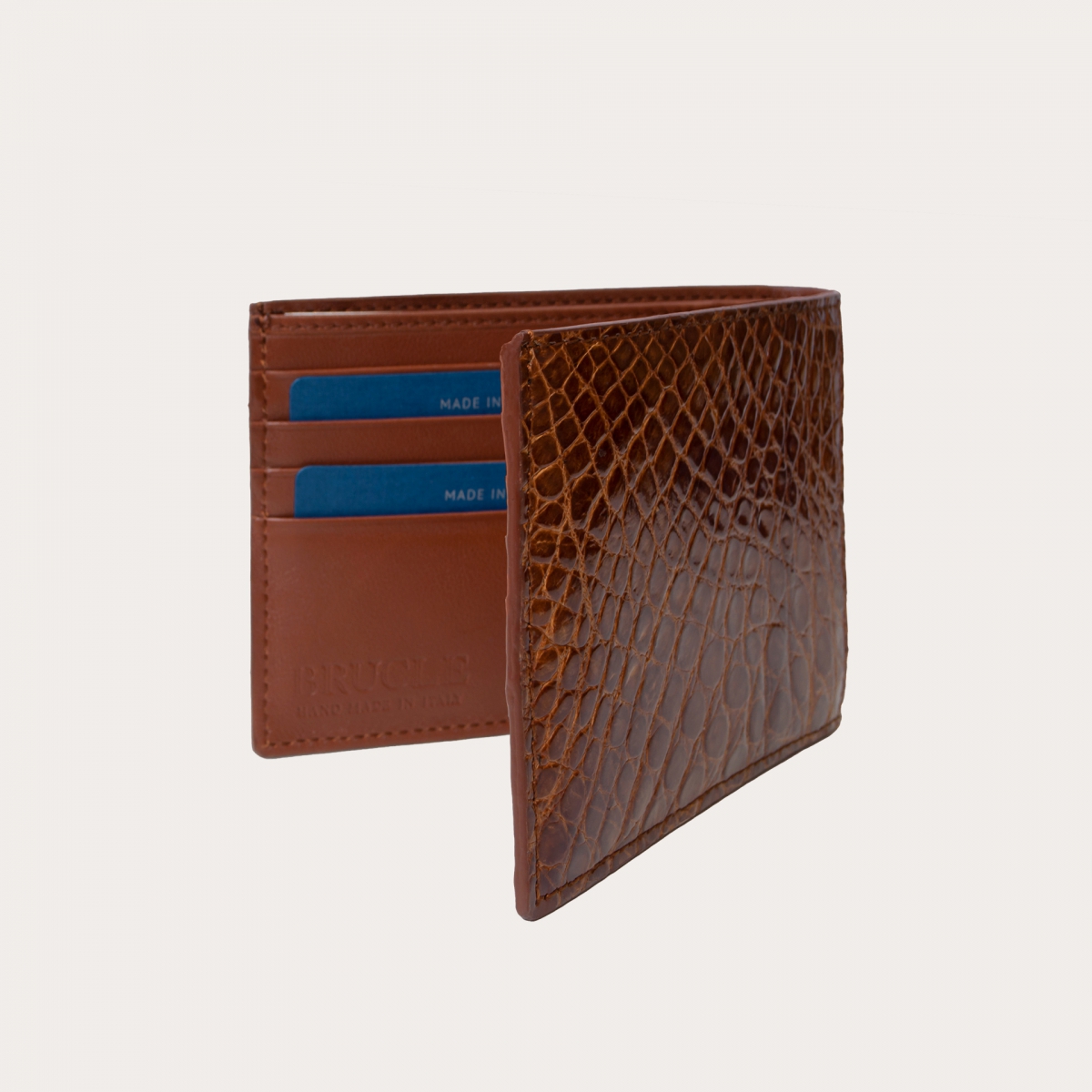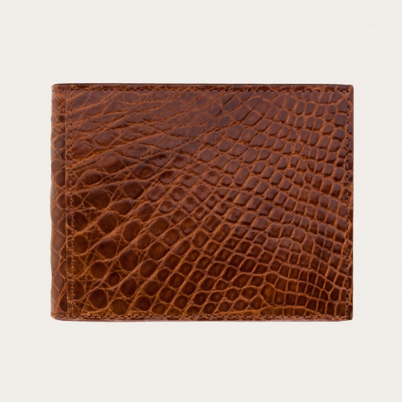 Portefeuille homme en crocodile d'une couleur bois exclusive, symbole de luxe et de raffinement.