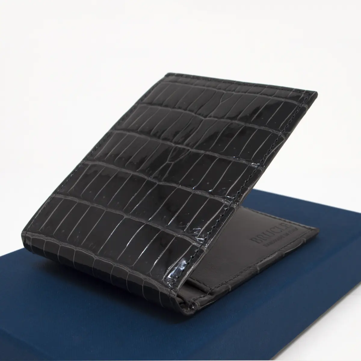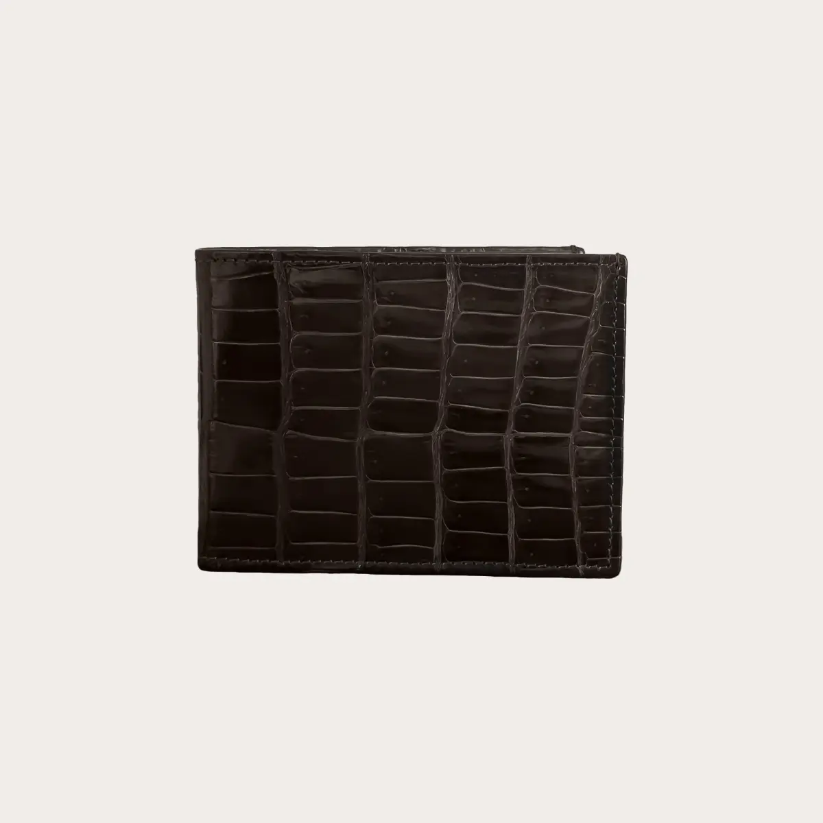 Réalisé avec le savoir-faire artisanal italien et un cuir de haute qualité caractérisé par des écailles carrées, ce portefeuille en crocodile offre un espace généreux pour organiser et transporter toutes les cartes et documents nécessaires.