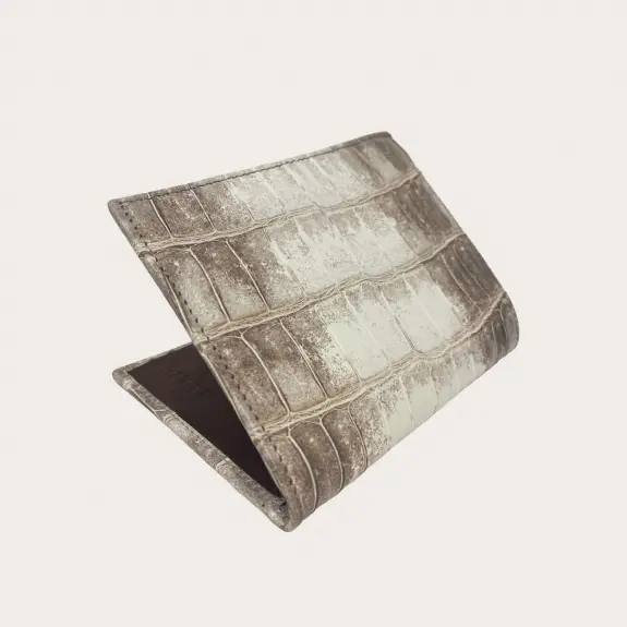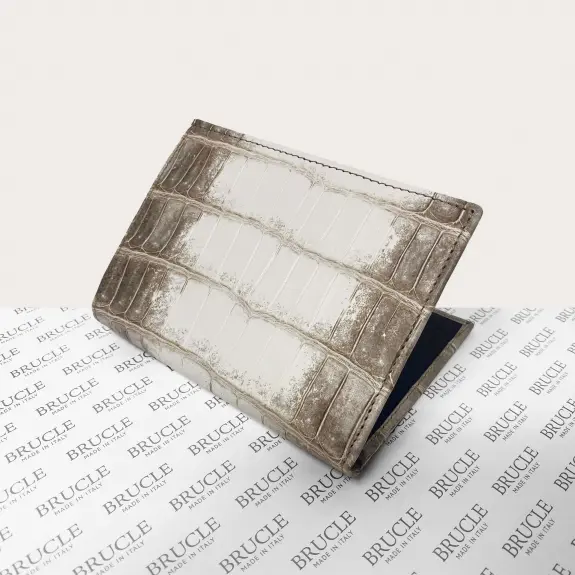 Raffiné et distinctif, ce portefeuille passeport est une pièce extraordinaire, fabriqué à la main en cuir de crocodile blanc "Himalaya". Cet accessoire luxueux représente le summum de l'artisanat italien et sa couleur, blanc avec des nuances plus foncées, est inspirée des sommets enneigés de la chaîne de montagnes dont il porte le nom. Un cuir très précieux et coûteux, avec un caractère unique qui démontre le style et la sophistication.