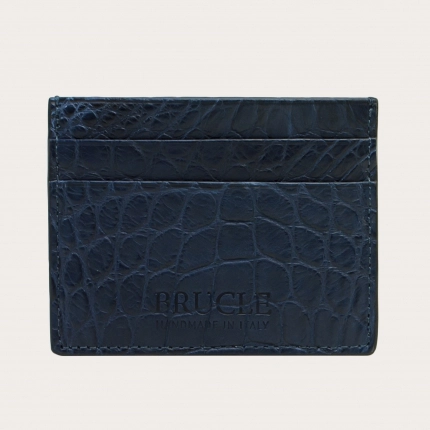 Porte carte de crédit vert en cuir véritable alligator