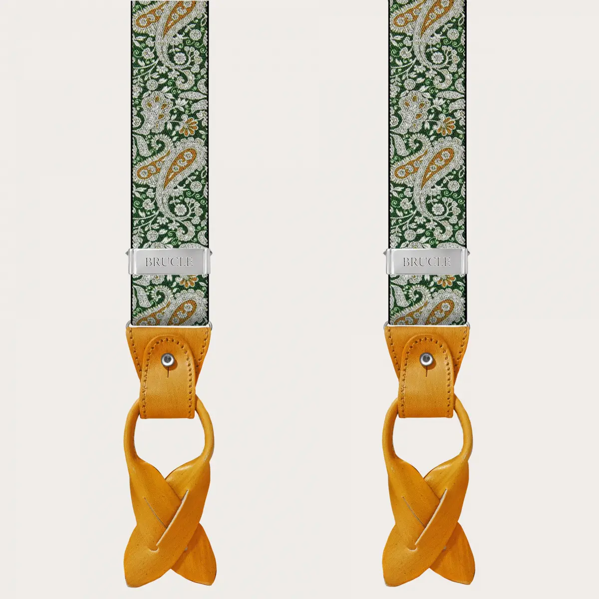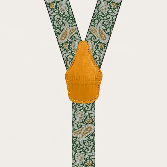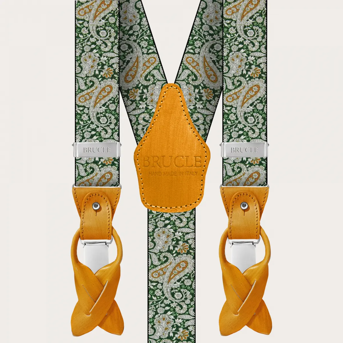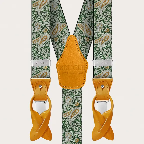 Couleur : vert et or ; parties en cuir : jaune teinté à la main