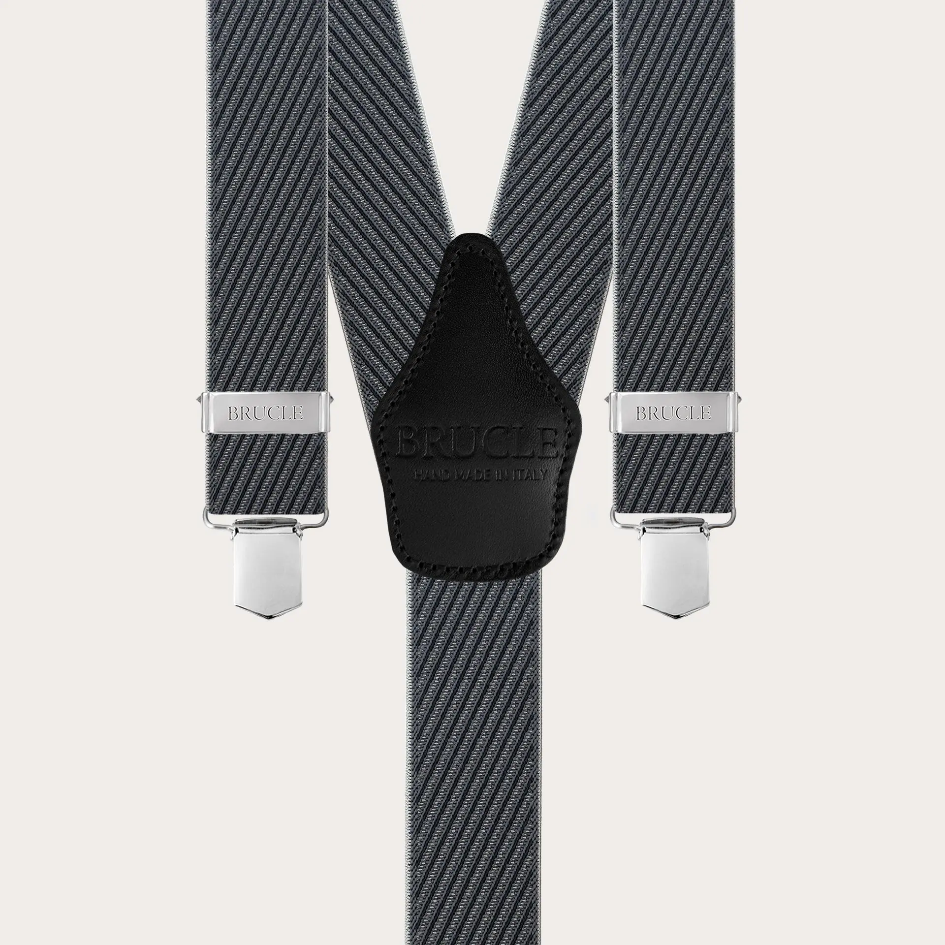 Bretelles classiques noires à rayures avec motif gris tridimensionnel. Un modèle de bretelle large versatile, adapté tant pour les cérémonies que pour rehausser un look plus décontracté.