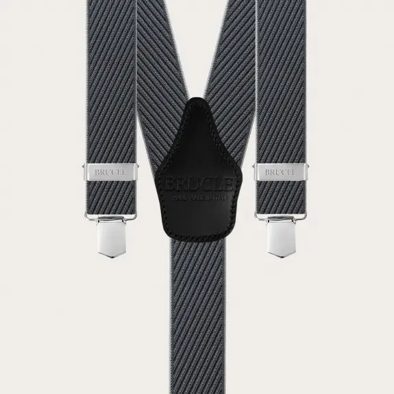Bretelles élastiques noires et grises à rayures avec clips