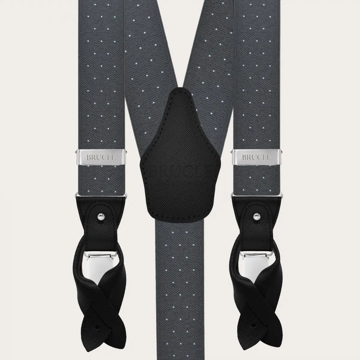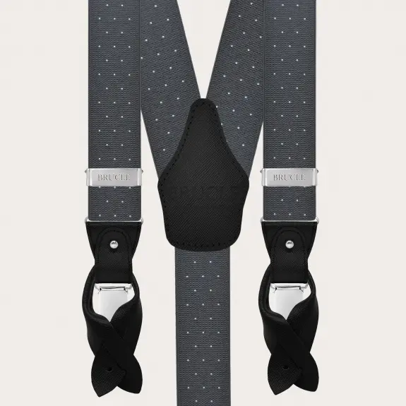 Bretelles grises à pois avec boutons à double usage et clips sans nickel