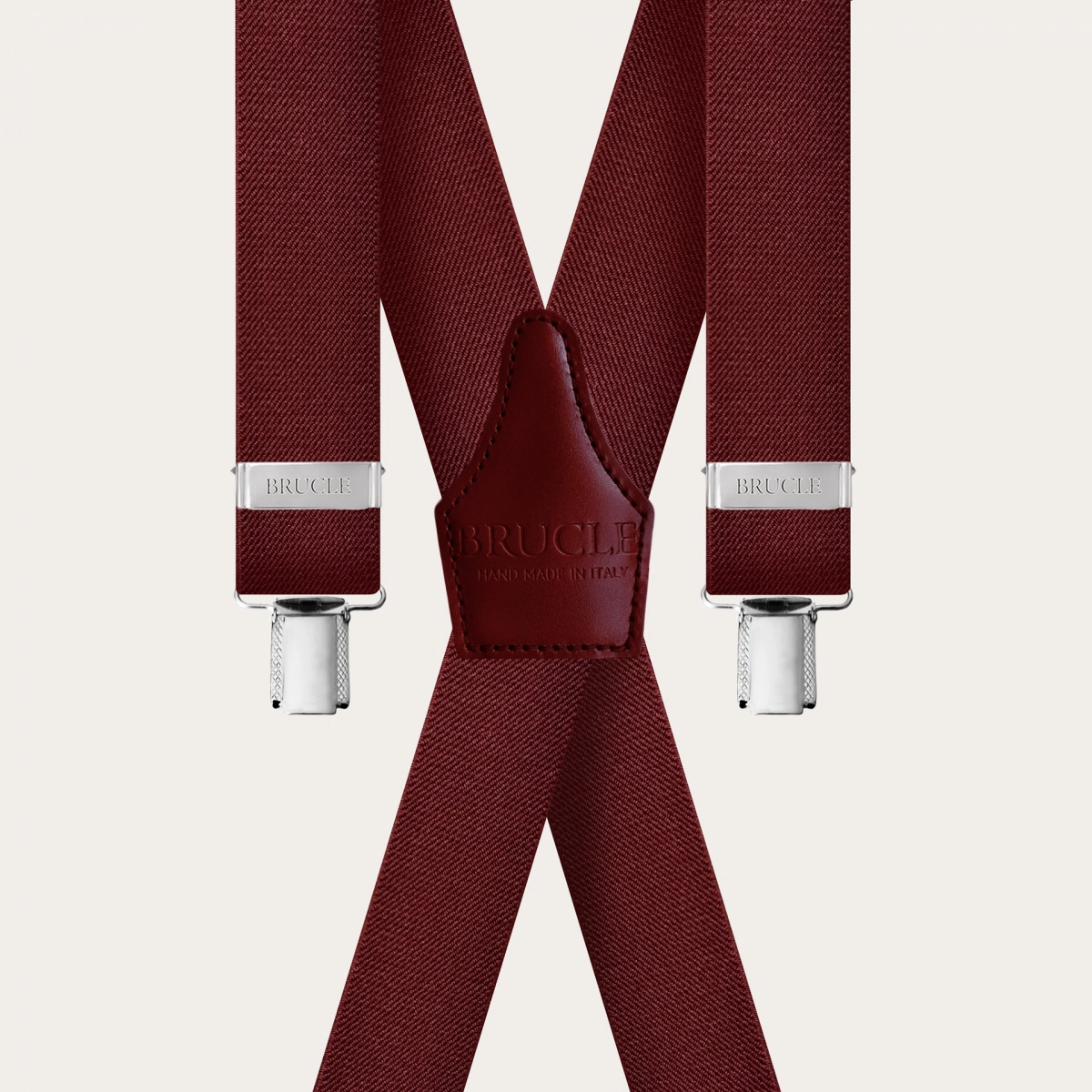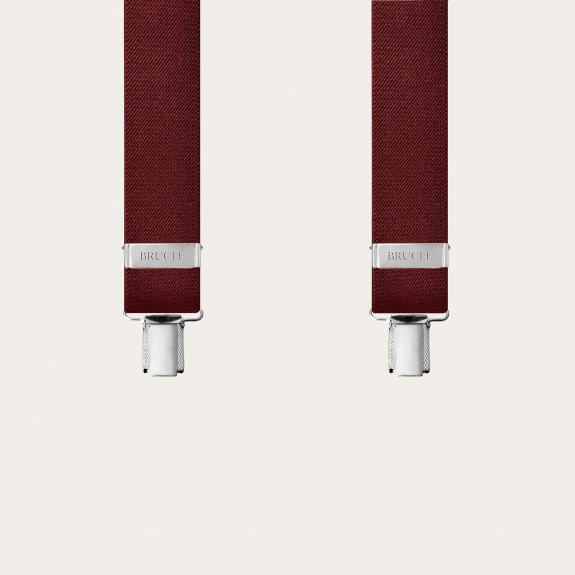 Ces bretelles en forme de X bordeaux pour homme et femme sont un modèle classe, élégant et confortable car elles sont élastiques et équipées de clips de haute qualité et résistance.