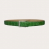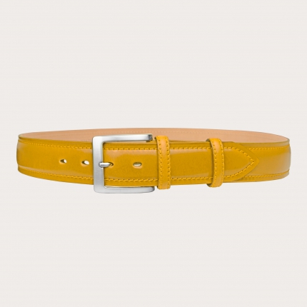 Ceinture bleu marine exclusive en cuir teinté à la main, finie avec une boucle au design classique et finition sans nickel.