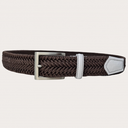 Ceinture élastique tressée bleue avec des touches d'orange et de beige