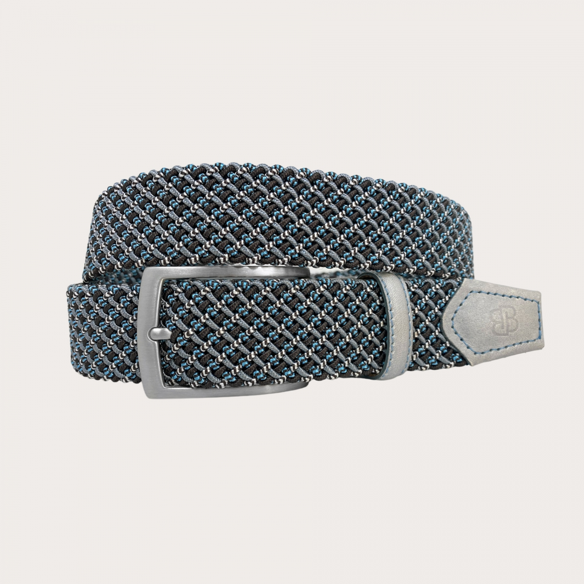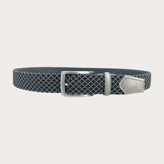 Découvrez l'élégance intemporelle de notre ceinture tressée élastique en gris et bleu BRUCLE, avec un design exclusif et unique. Son tressage particulier offre un effet tridimensionnel, donnant un résultat surprenant et inédit. Fabriquée à la main en Italie, cette ceinture tressée élastique en gris et bleu représente l'authentique Made in Italy, en combinant des matériaux de haute qualité et une minutieuse attention aux détails.