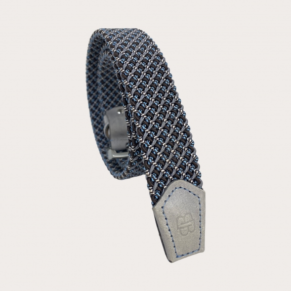 Ceinture élastique tressée en gris et bleu, au design tartan, sans nickel