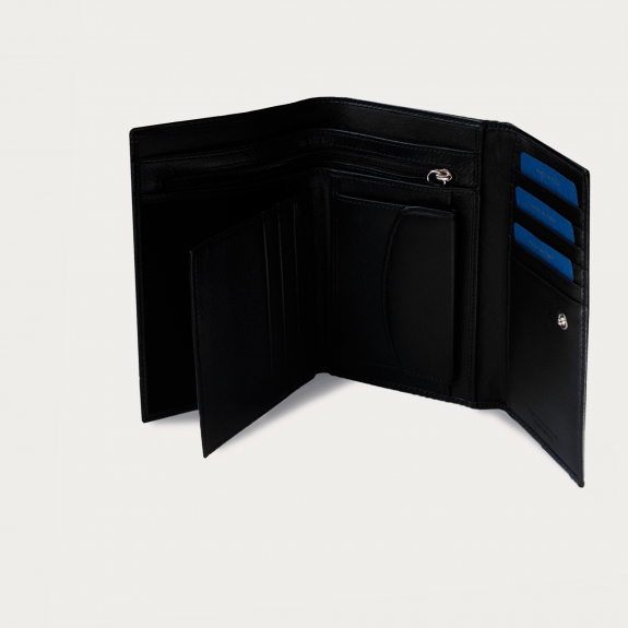 Portefeuille en véritable cuir pleine fleur avec porte-cartes, porte-documents et porte-monnaie, couleur noire