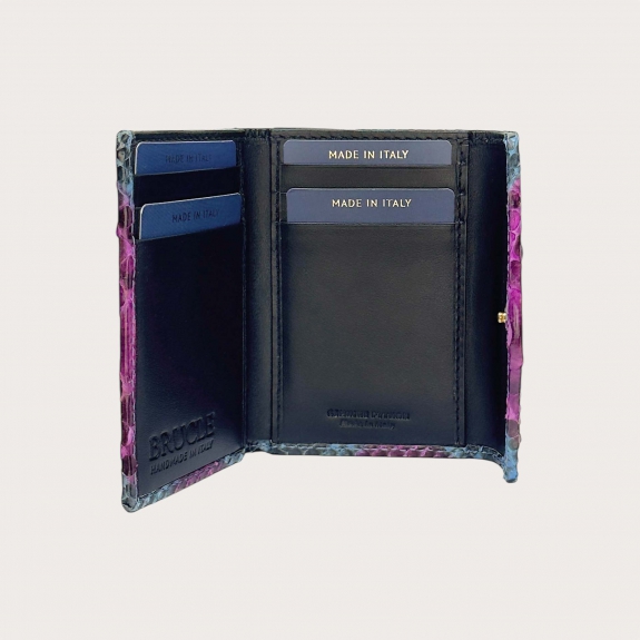 Fabriqué à la main en Italie à partir de cuir de python réticulé de première qualité, il est doté de finitions haut de gamme et présente un design à trois compartiments, parfait pour ranger cartes, billets et petits essentiels.