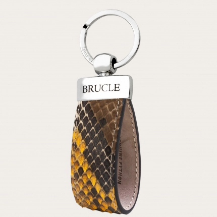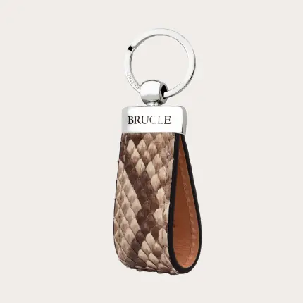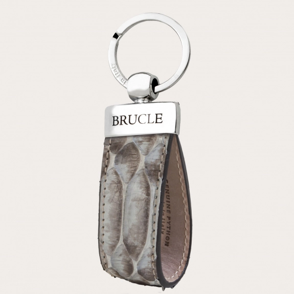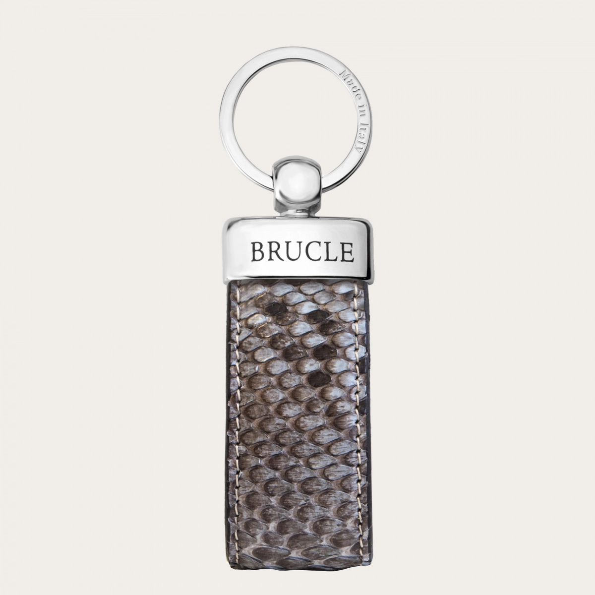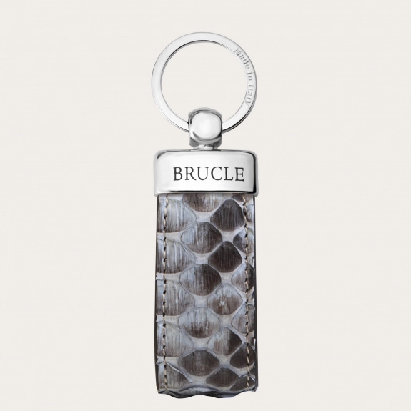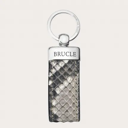 Porte-clés gris aux nuances bleues en véritable cuir de python. Un porte-clés artisanal fabriqué en Italie avec les meilleurs cuirs certifiés, c'est un accessoire exclusif, unique et précieux. Conçu pour durer, de haute qualité, 100% Made in Italy.