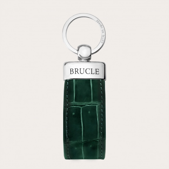 Porte-clés en crocodile vert fabriqué à la main en Italie.