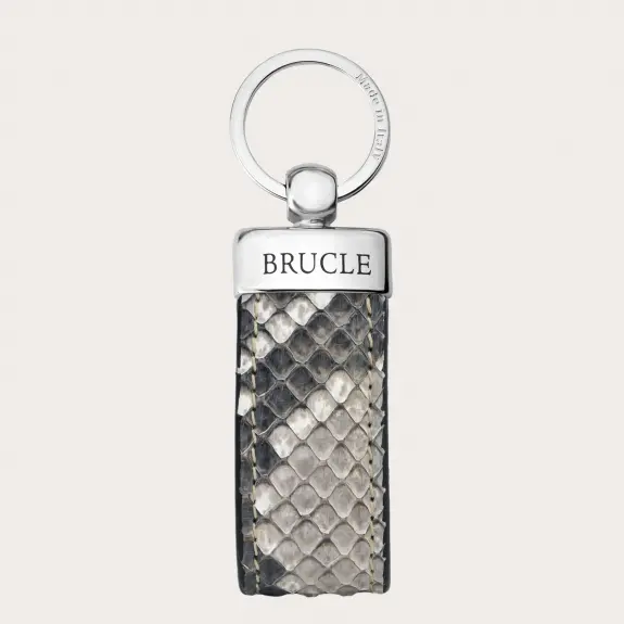 Porte-clés en véritable cuir de python tamponné, couleur roche