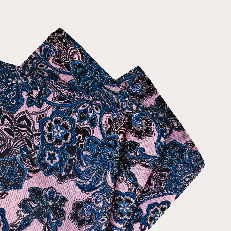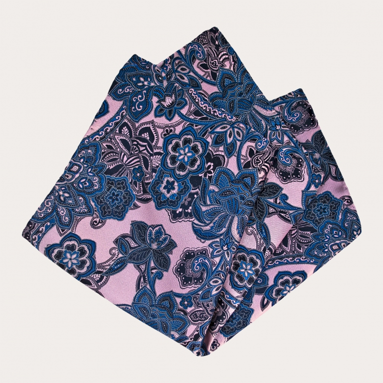 Artisanal et de haute qualité, la pochette de costume en soie rose est l'accessoire parfait pour ajouter une touche de couleur raffinée à votre tenue. Cette élégante pochette est faite à la main en Italie à partir de pure soie jacquard tissée à Côme, une ville réputée pour son excellence dans le tissage de la soie. Le savoir-faire artisanal et l'attention portée aux détails assurent un produit de la plus haute qualité, distingué par sa beauté et son raffinement.