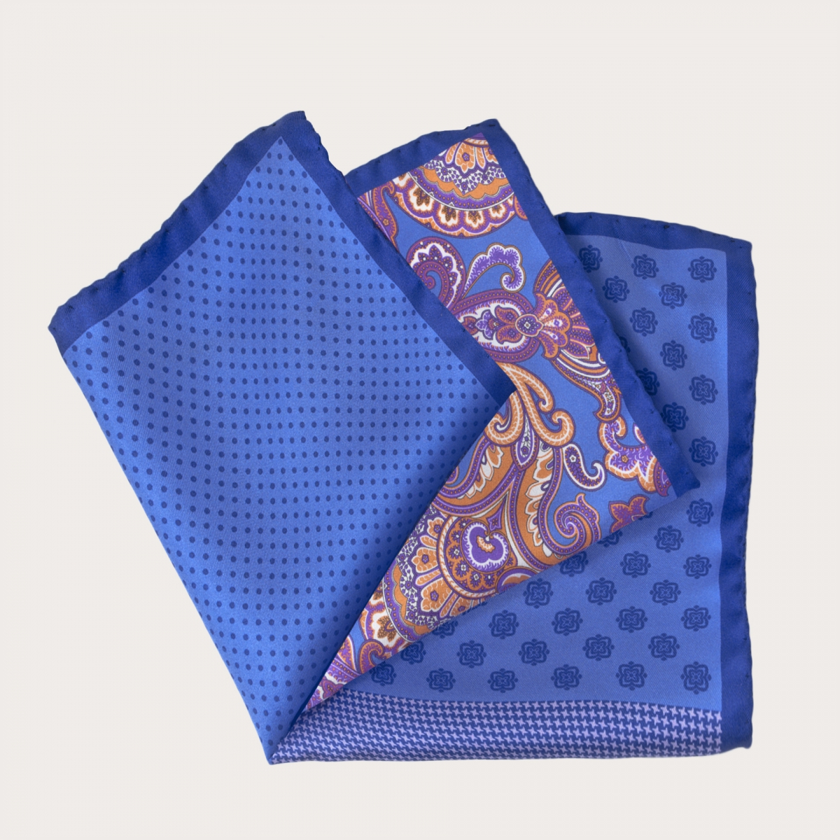 Découvrez la pochette en soie violette pour homme, entièrement réalisée en Italie en pure soie jacquard tissée à Côme. Des accessoires coordonnés en soie sont également disponibles, tels que des bretelles pour boutons ou clips, des cravates étroites et larges, ainsi que des nœuds papillon pré-noués ou à nouer, tous créés dans la même soie pour un look total sophistiqué et distinctif.