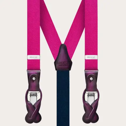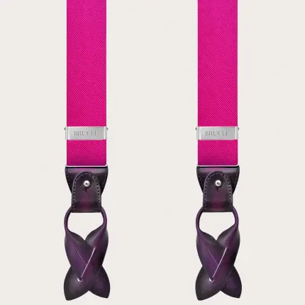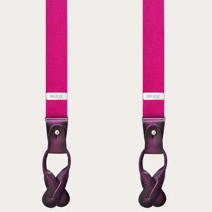 Découvrez la pochette en soie fuchsia, entièrement fabriquée en Italie en pure soie jacquard tissée à Como. Sont également disponibles des accessoires en soie assortis tels que bretelles, cravates étroites et larges, et nœuds papillon, prénoués et à nouer, réalisés dans la même soie, pour un look total unique et étonnant.