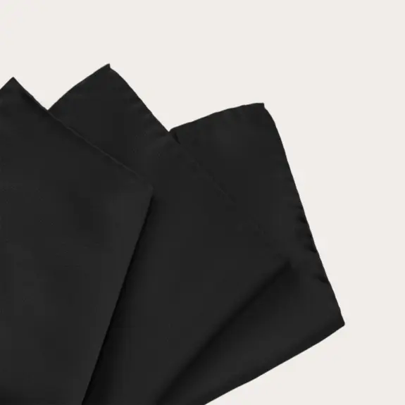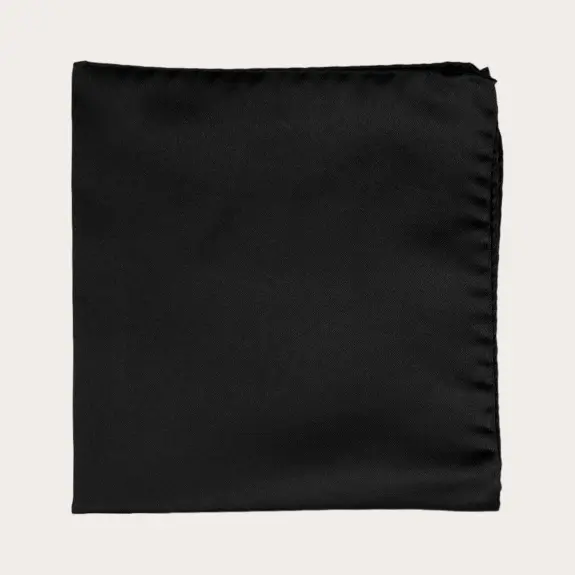 Pochette de costume en satin de soie noir : un accessoire classique qui ne devrait manquer dans aucune garde-robe. Fait à la main en Italie avec du satin de soie de haute qualité, il a un bord roulé à la main et cousu à la machine pour un résultat élégant et raffiné. Découvrez aussi les accessoires coordonnés réalisés avec la même soie, comme les bretelles, cravates et nœuds papillon.