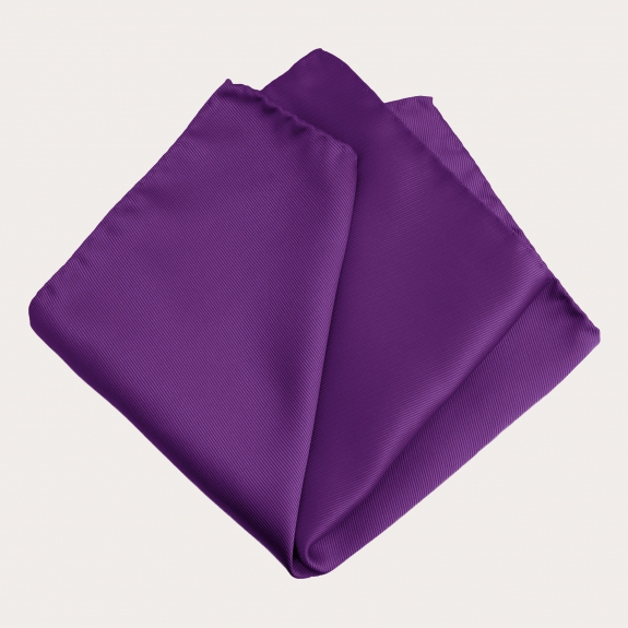 Découvrez la pochette en soie violette pour homme, entièrement réalisée en Italie en pure soie jacquard tissée à Côme.