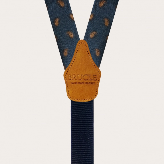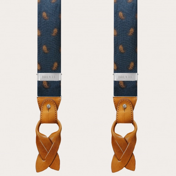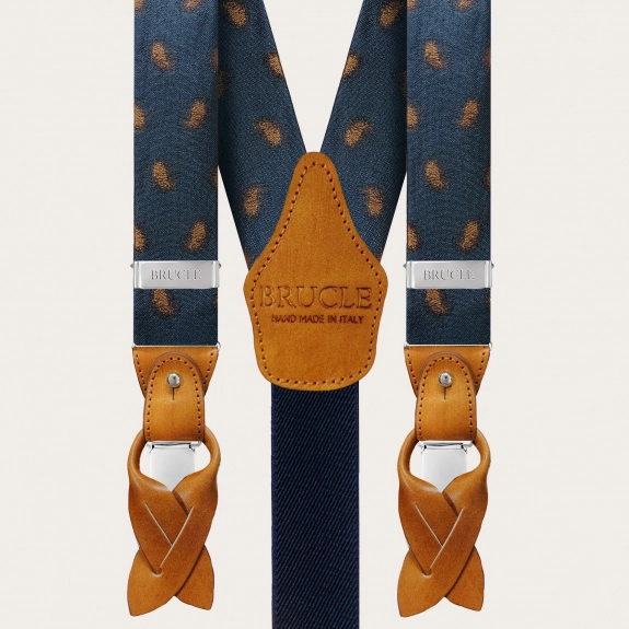 Élégantes bretelles larges en soie paisley bleue sans nickel