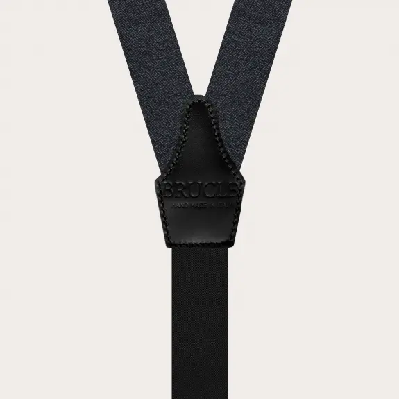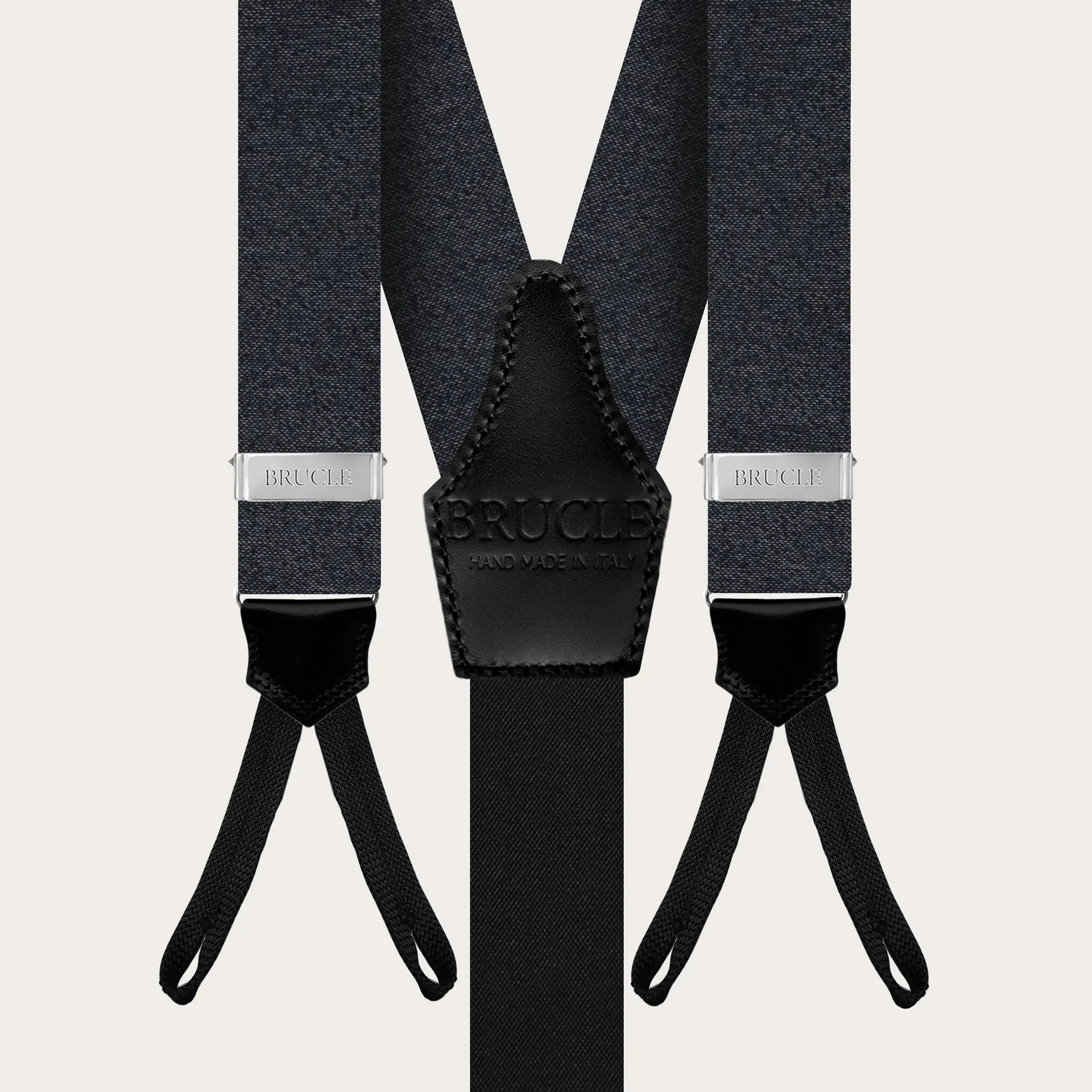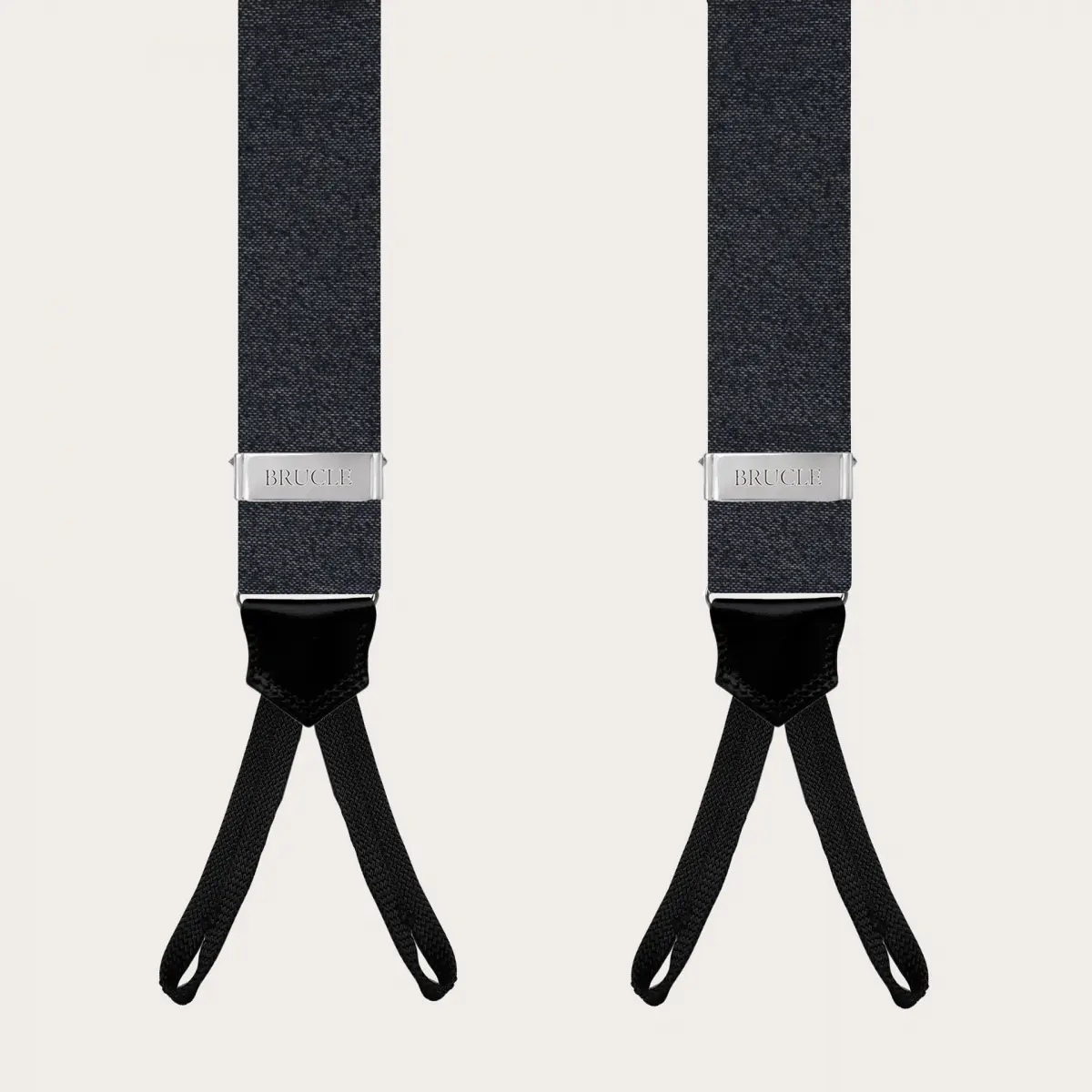 Bretelles pour homme en satin de soie bleu marine, usage double avec boutons ou clips sans nickel