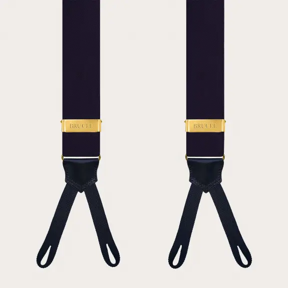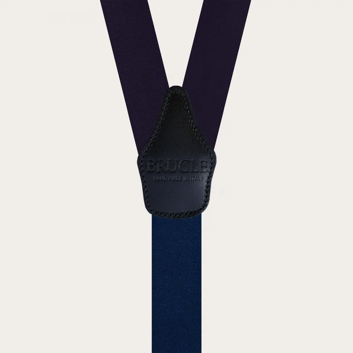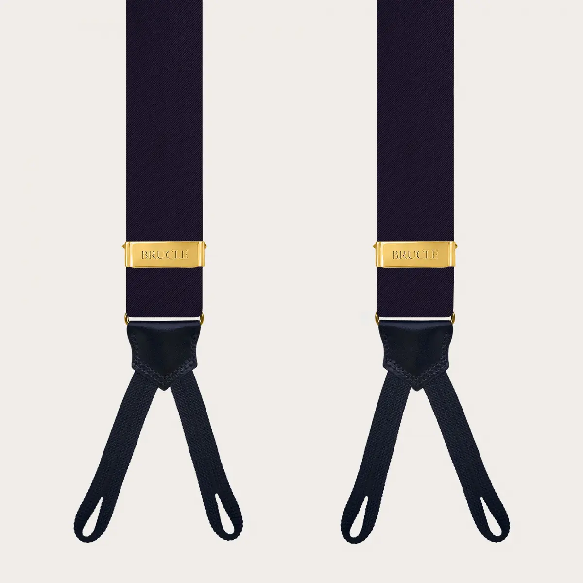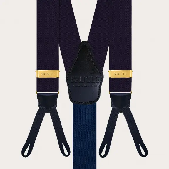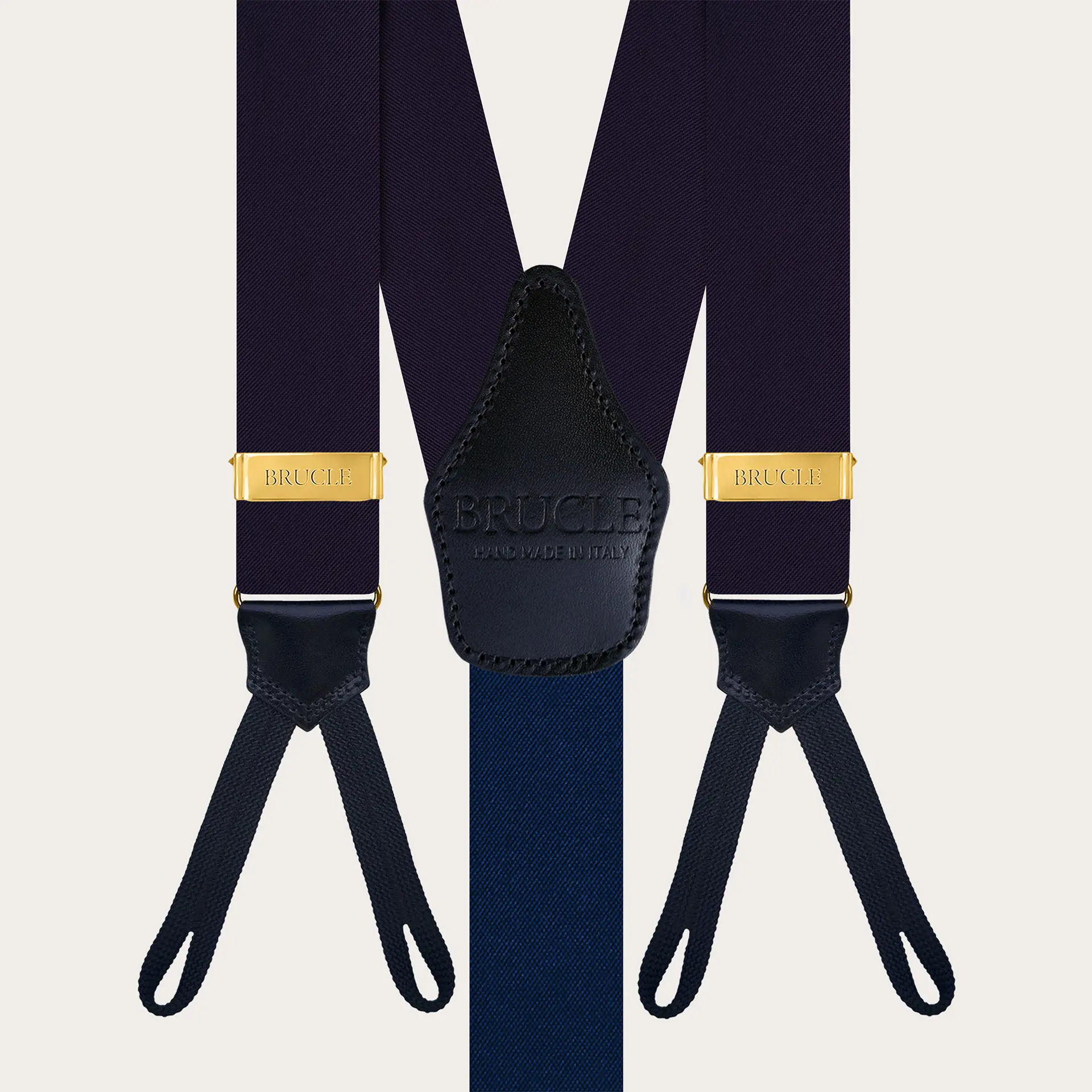 Élégantes bretelles pour hommes en satin de soie bleu avec des ajusteurs dorés, complétées par des pattes en tissu à porter exclusivement avec des boutons, pour un style élégant et raffiné, parfait pour les cérémonies.