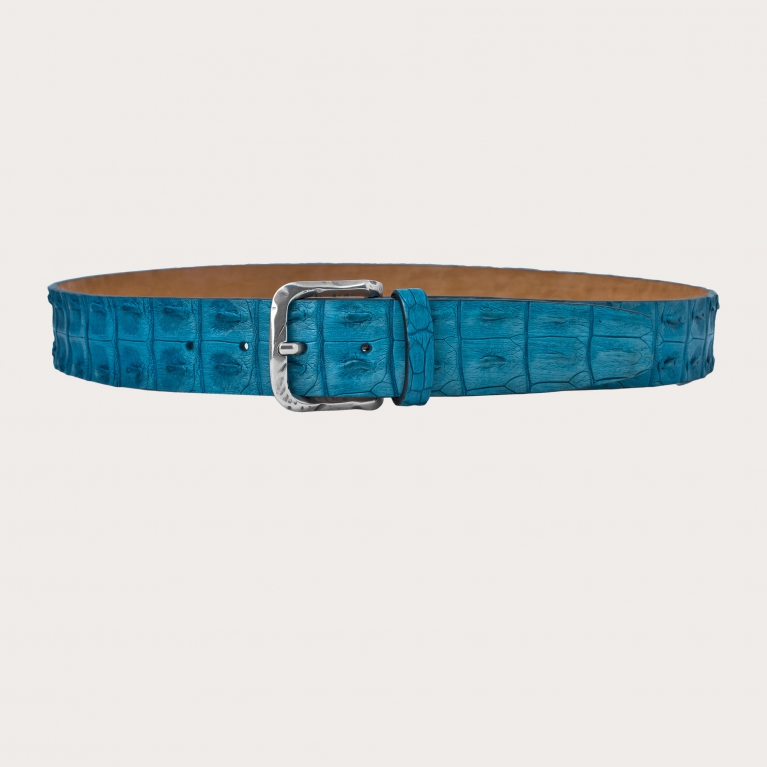 Ceinture crocodile colorée à la main, couleur blue jeans