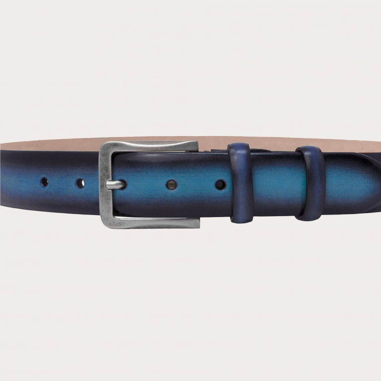 Ceinture haute bleue en cuir teint à la main et dégradé