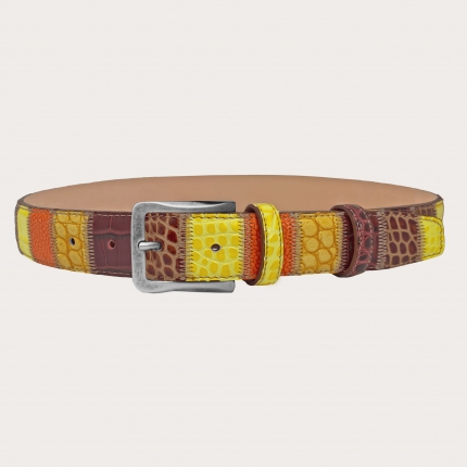 Ceinture en cuir de python véritable, cousue main patchwork. L'accessoire de mode idéal pour un look branché et élégant. 100% Made in Italy, fabrication artisanale de haute qualité.