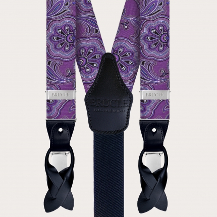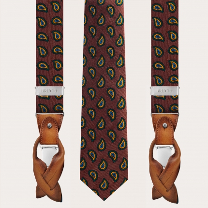 Bretelles vertes en soie originales pour boutons, avec des parties en cuir colorées à la main, un accessoire emblématique de l'artisanat italien.