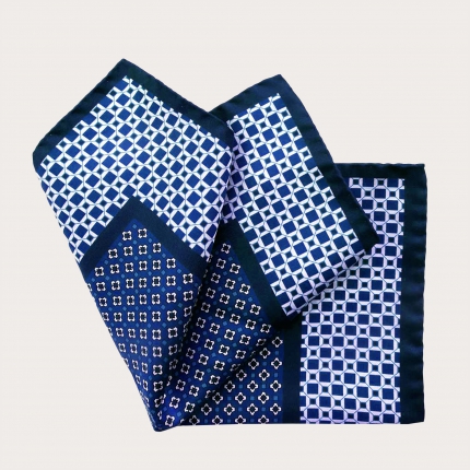 Nœud papillon pre noué à pois et pied de poule bleue