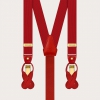 Bretelles rouges étroites en satin de soie avec des clips dorés et des pattes pour boutons