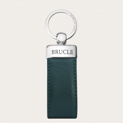 Portachiavi in vera pelle stampa saffiano, verde foresta