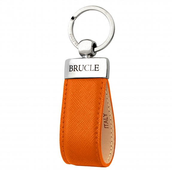 Portachiavi in vera pelle stampa saffiano arancione mandarino